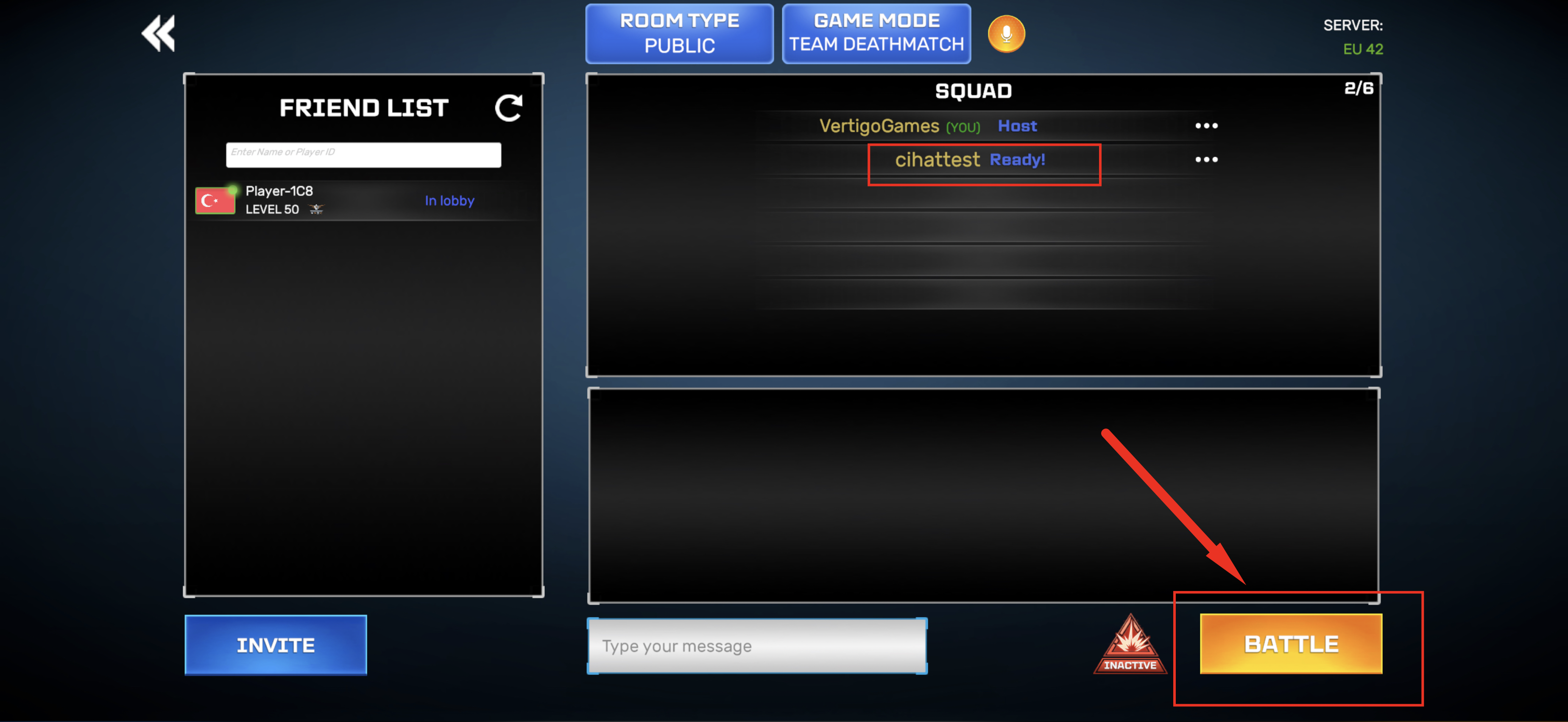 Great! You are all set. Now all you have to do is to customize your lobby type over the top bar and tap on BATTLE button to start your matchmaking.You can also try the new Private Room system with your friends, check this article to learn more.