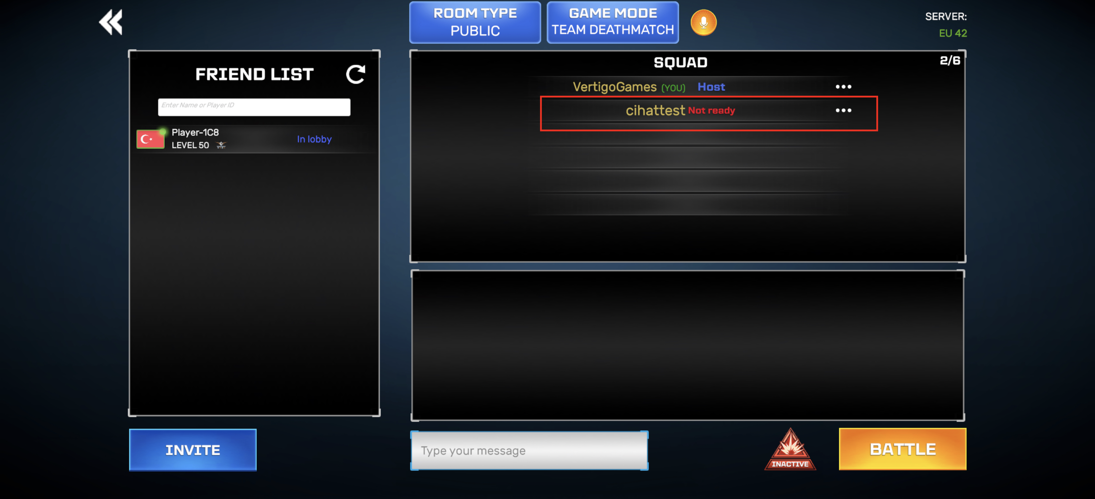The friend you have invited will receive an invitation pop-up as shown below. - When your friend accepts your squad invitation, you will have to wait until you see his or her status as READY. Only then, you will be able to play together.
