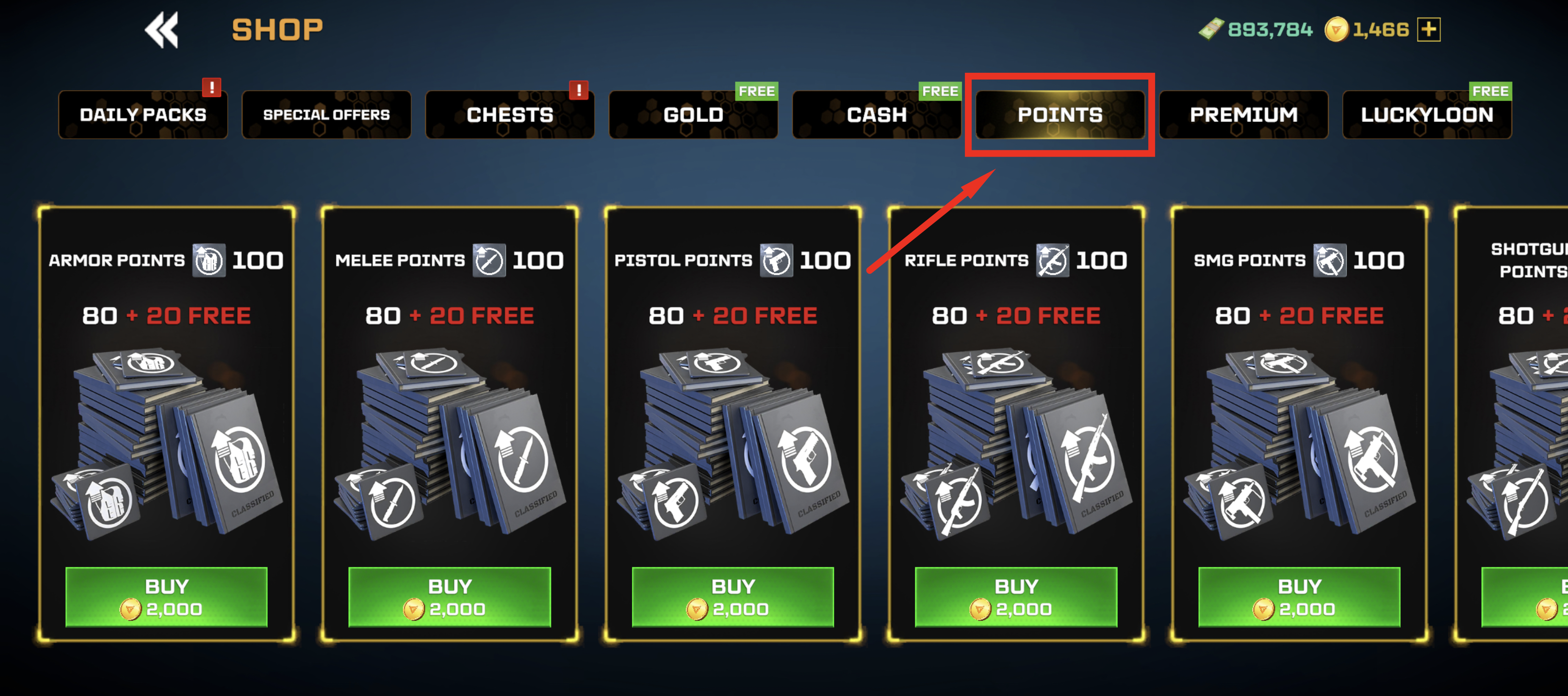 - You can buy points from SHOP