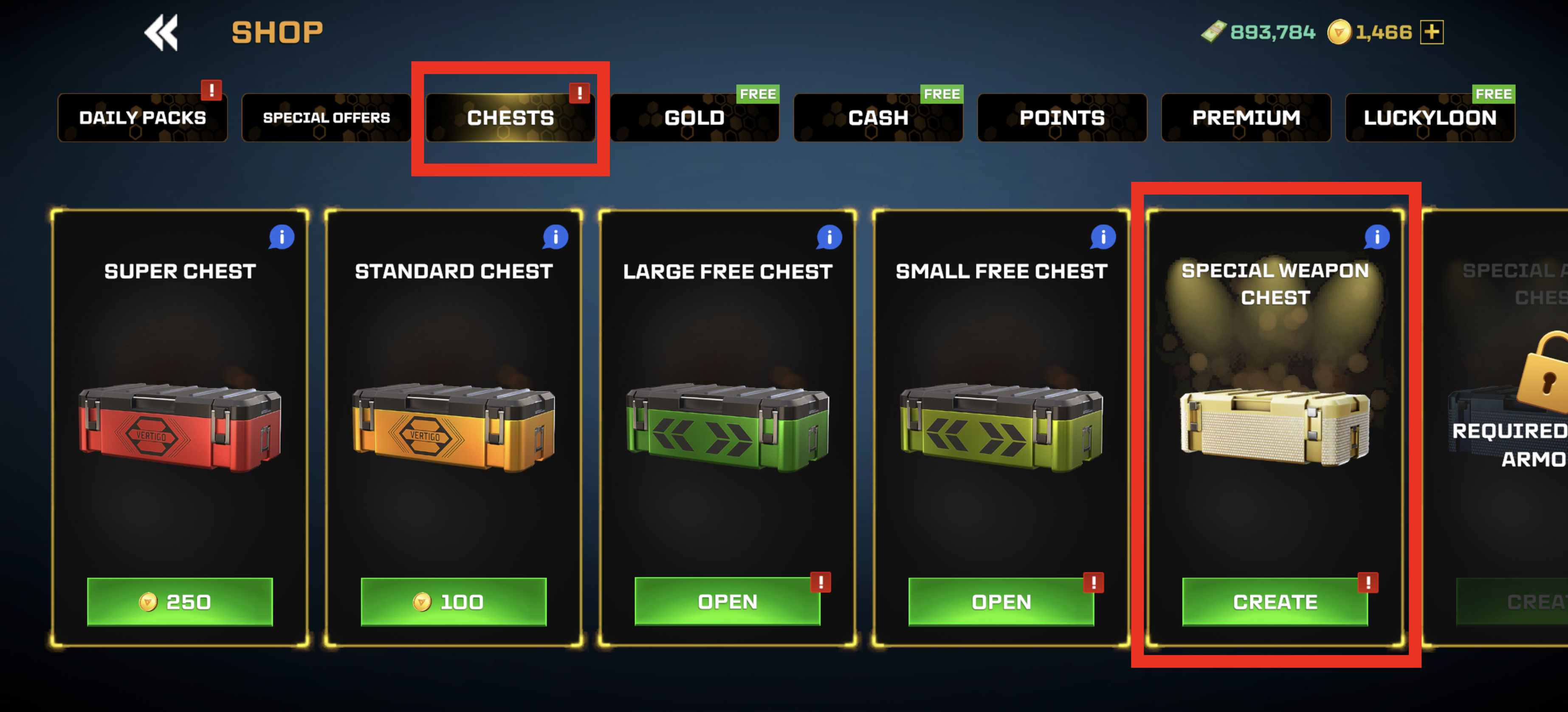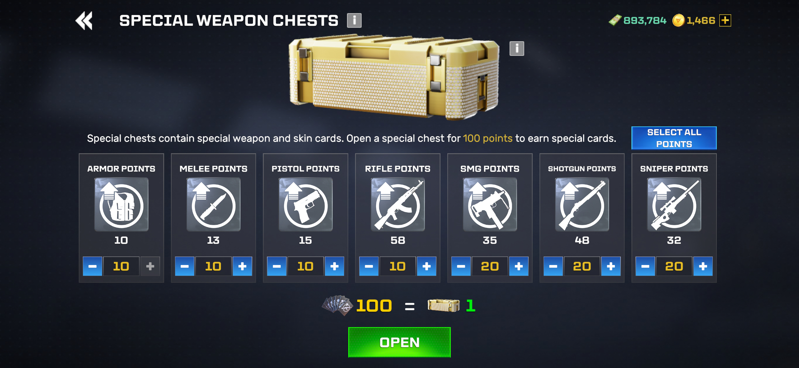You can open 1 Special Weapon or Armor Chest in exchange for 100 points.
