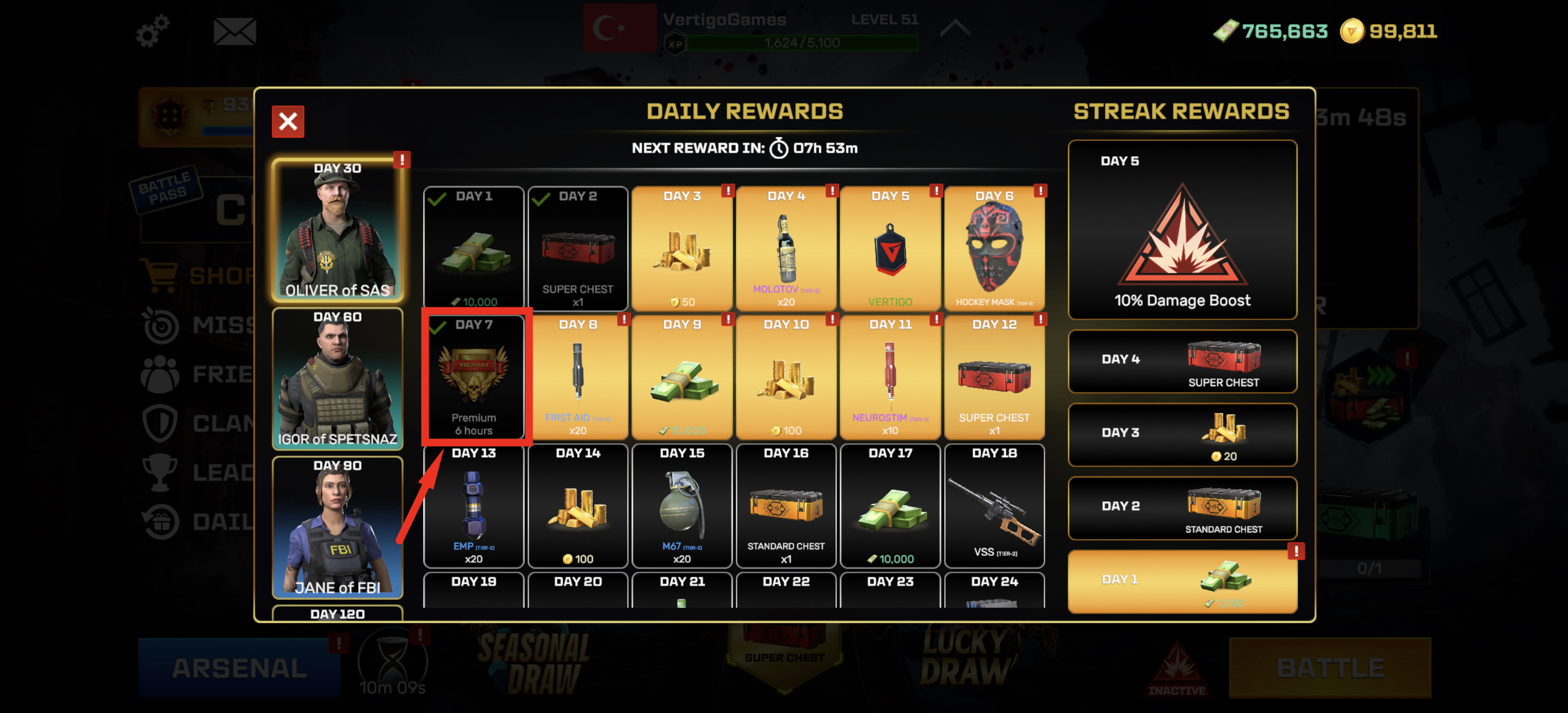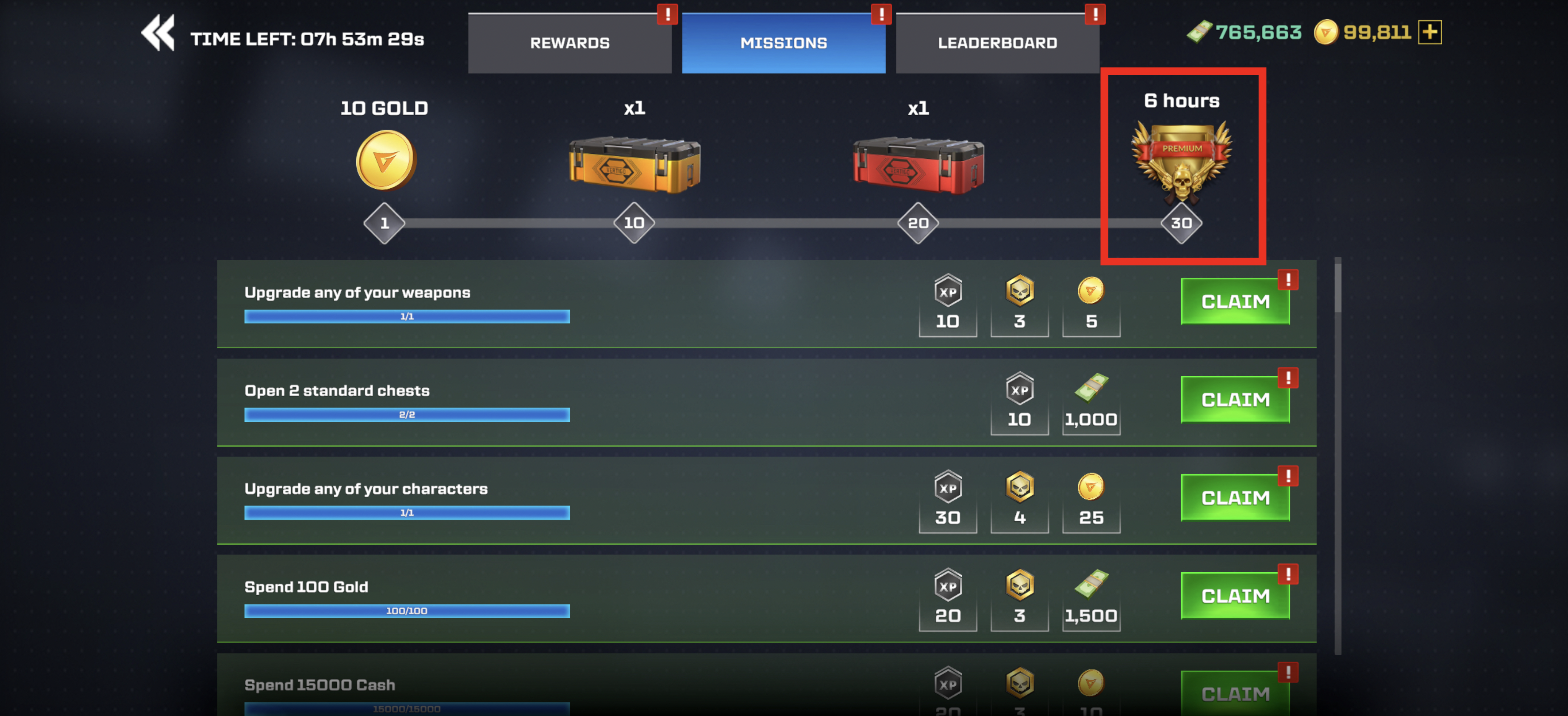 - When you complete 30 of your daily missions, you can collect your Free Premium for 6 hours over the top bar in Missions tab.