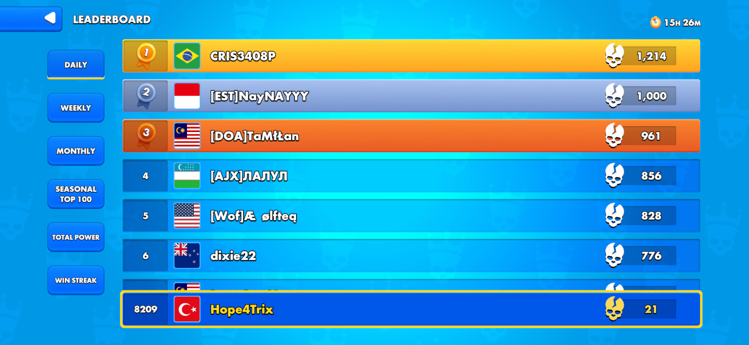 If you wish, enjoy the thrill of victory for an extended period with Win Streak and make it onto the leaderboard, or alternatively, achieve the highest number of kills. Or boast to everyone that you've reached the highest total power or total trophy count! 📣