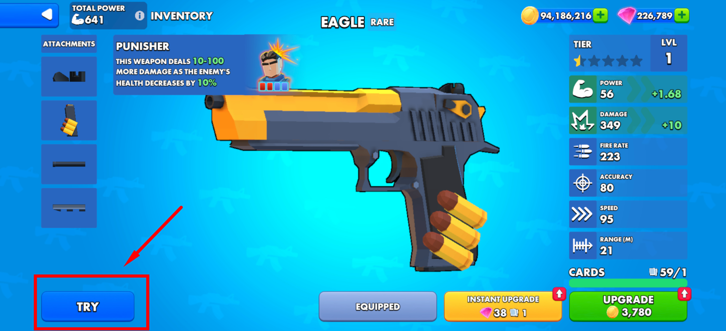 ❗ Important Note: You do not need to own the weapon, gadget or character you wish to test in order to use this mode. You can use this mode even if the item is locked, just to see its potential.