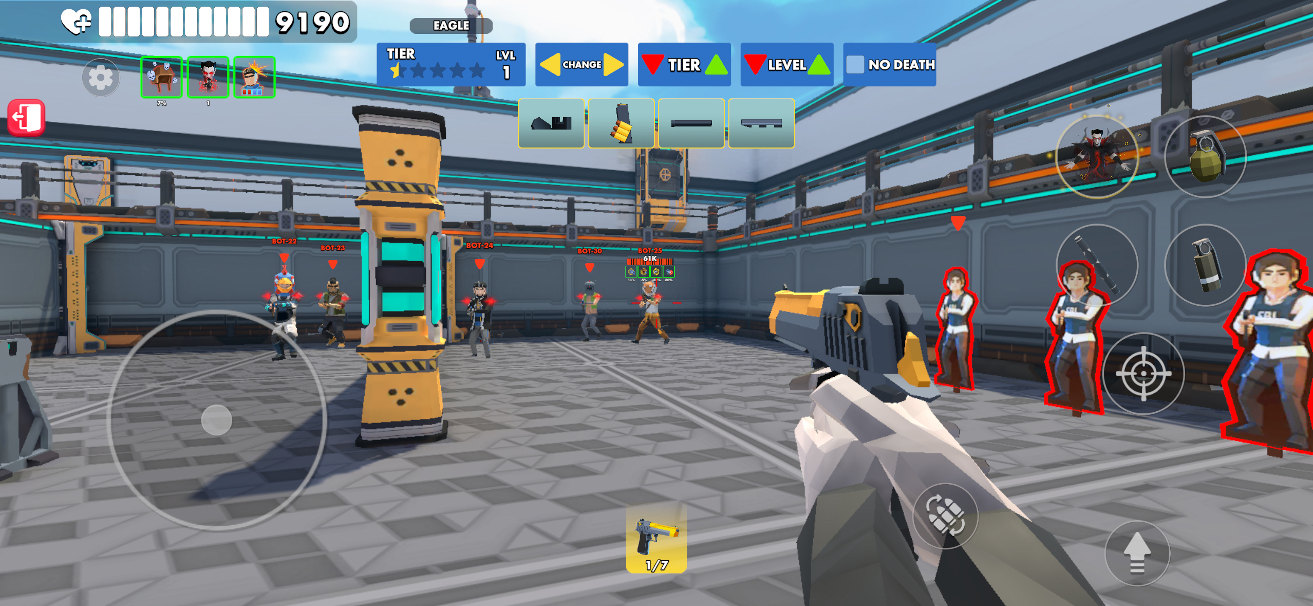 Polygun Arena offers a special Trial Mode (Shooting Range) that you can use to test out new weapons and characters before buying them or to better understand your current gear. This mode allows you to freely test all weapons and abilities.