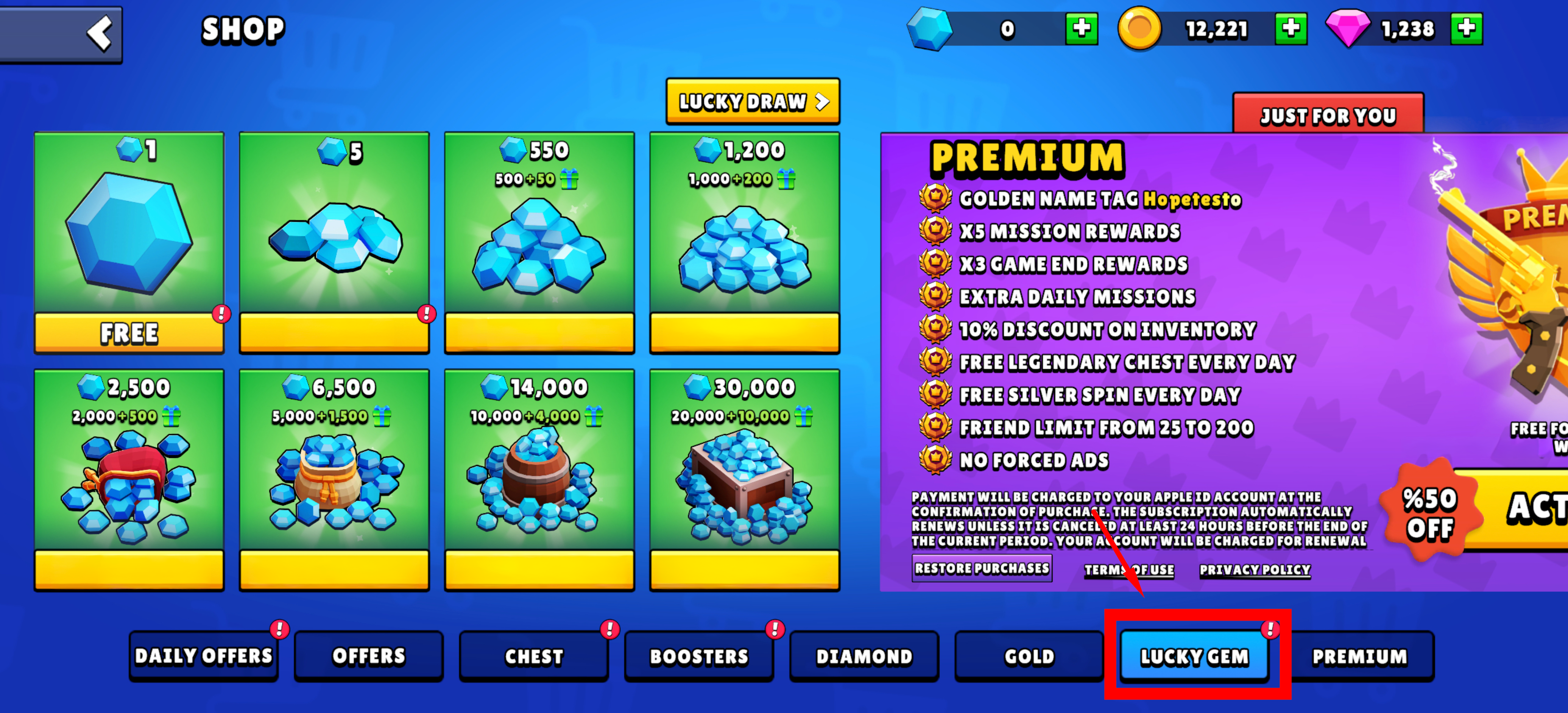 - Shop Claim: You can claim Lucky Gem via the in-game shop.