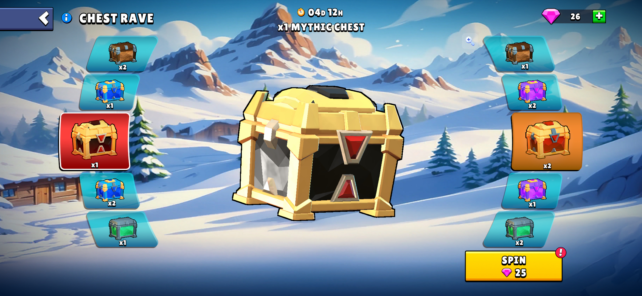 You can win chests of various rarities, including the top-tier Mythic Chest. Some slots grant x2 chests at once! 💥