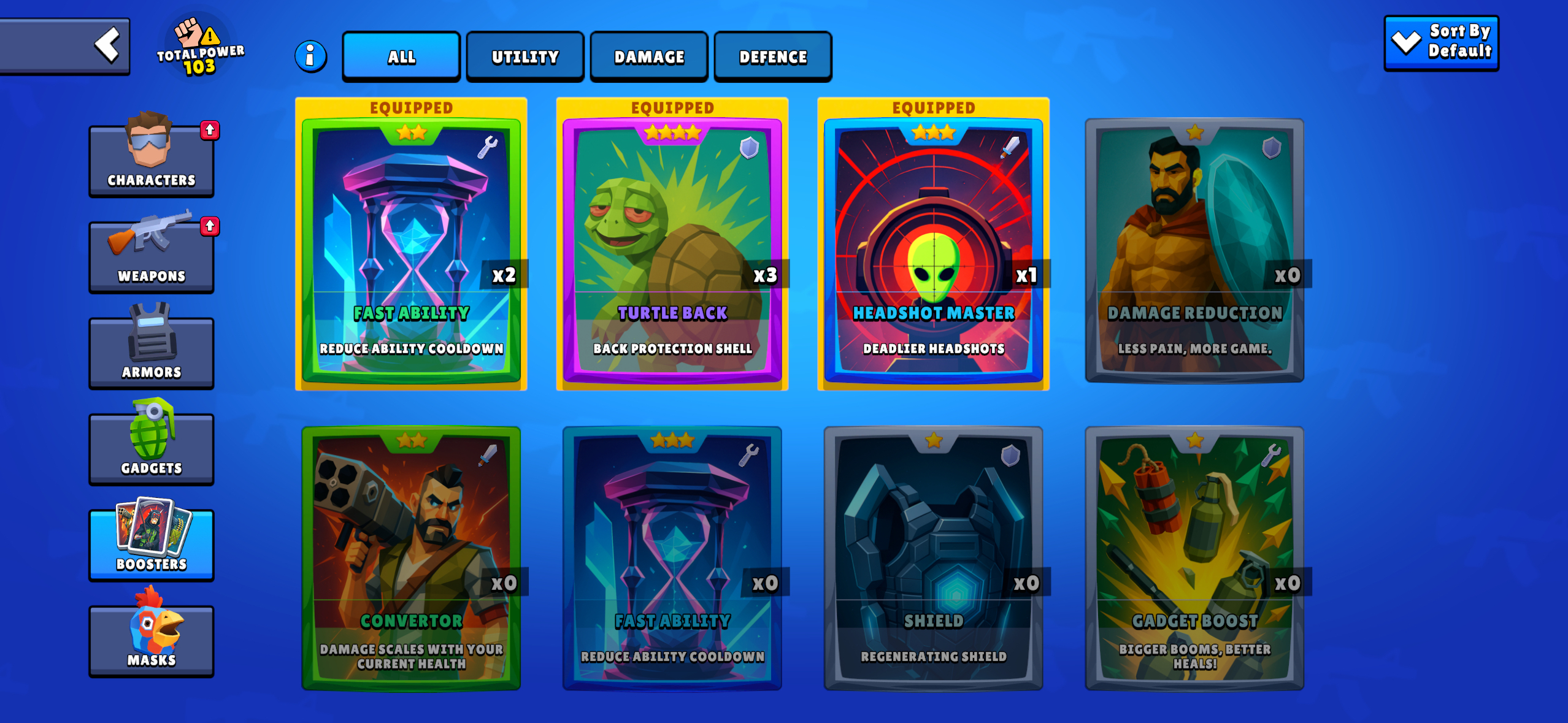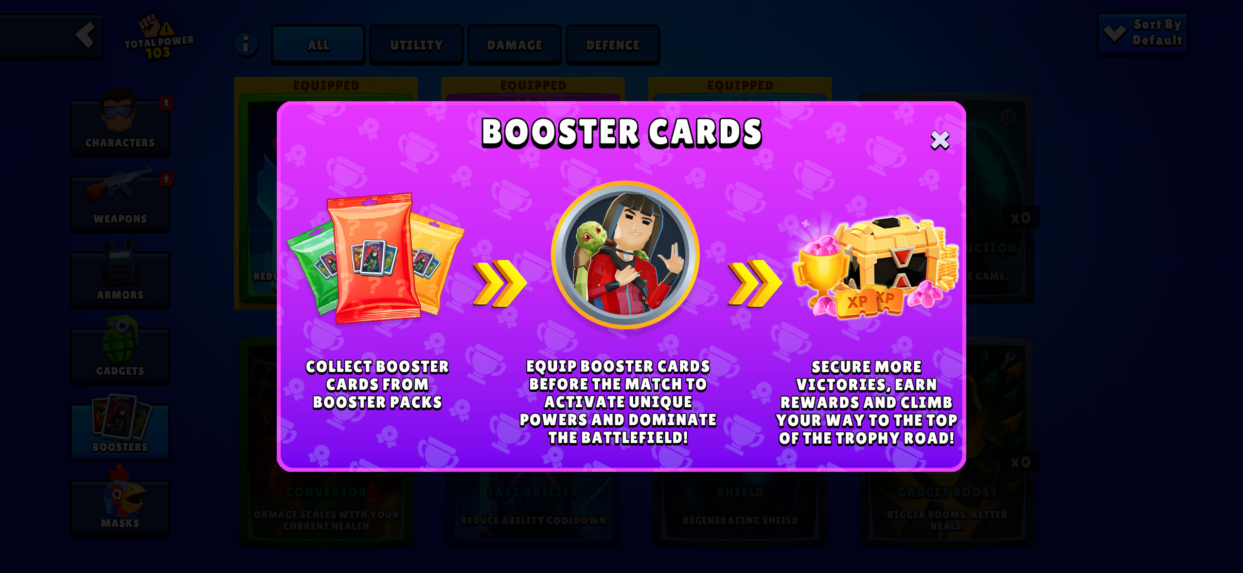 Booster Cards are special items that grant you unique passive abilities during gameplay. You must equip them before a match starts to activate their powers.