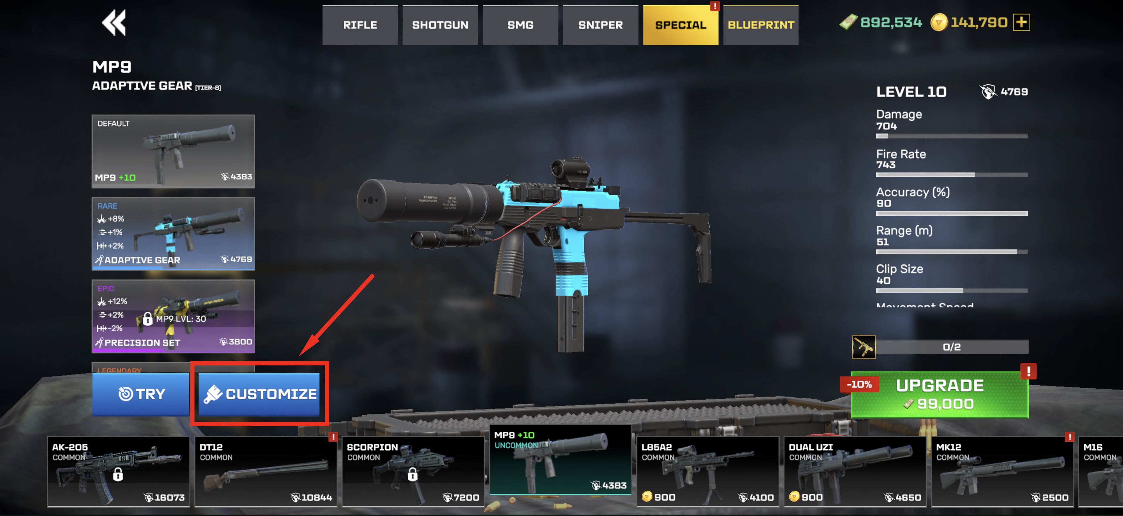 Tılsımı takmak istediğin silahı seç ve “Özelleştir”i seç.