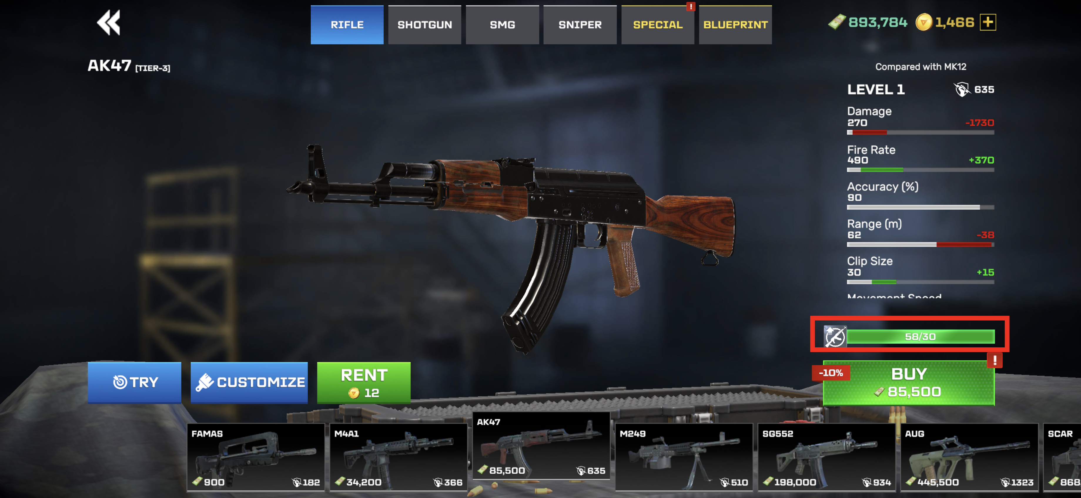 Fark edeceğin üzere, Cephanelik'te farklı teçhizatları kullanabilmen için çeşitli gereksinimler mevcut. Bu gereksinimlerden biri de işte puanlar.