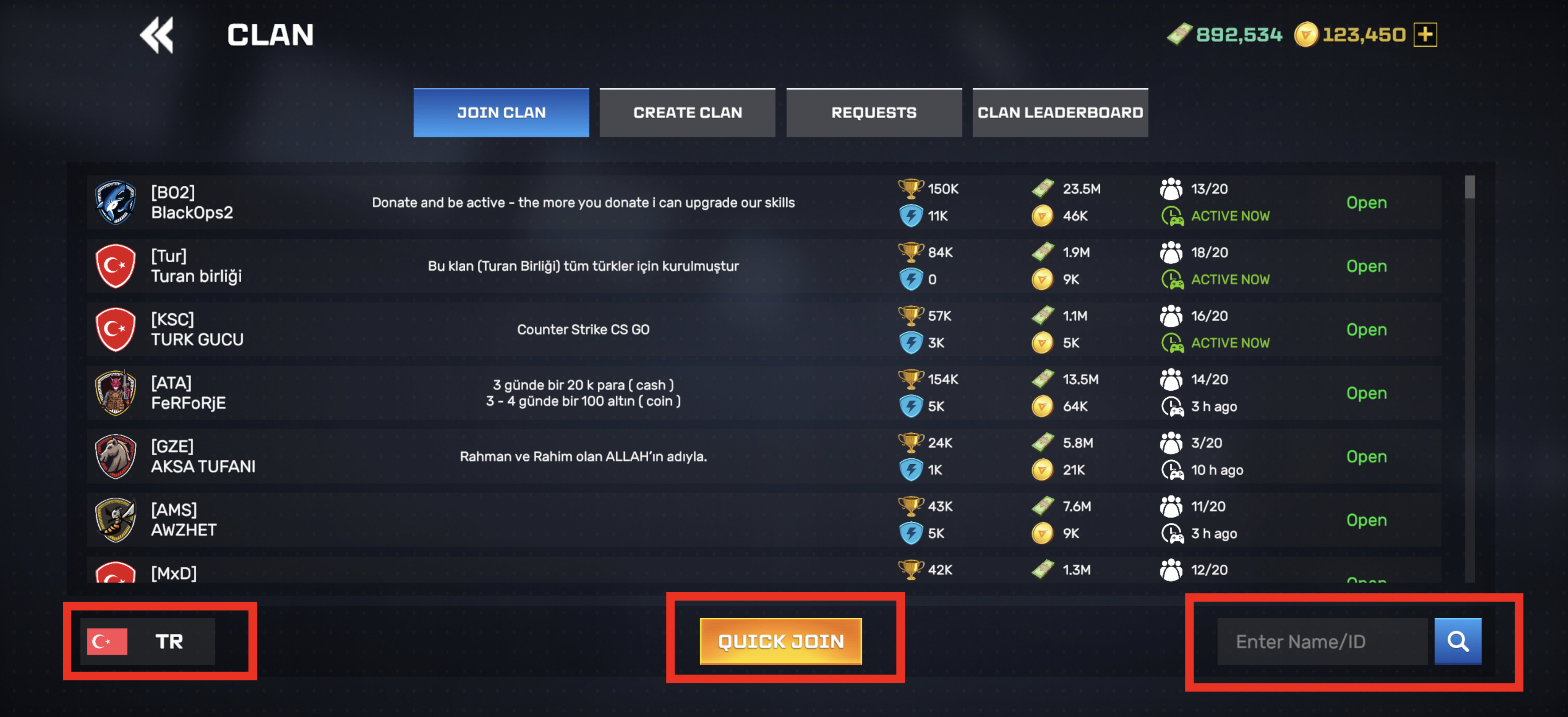 Klan arama sistemi, oyuncuların ülkelerine göre diğer klanları aramalarını sağlar. Bu, yerel bir klan aramak isteyen oyuncular için oldukça faydalıdır.