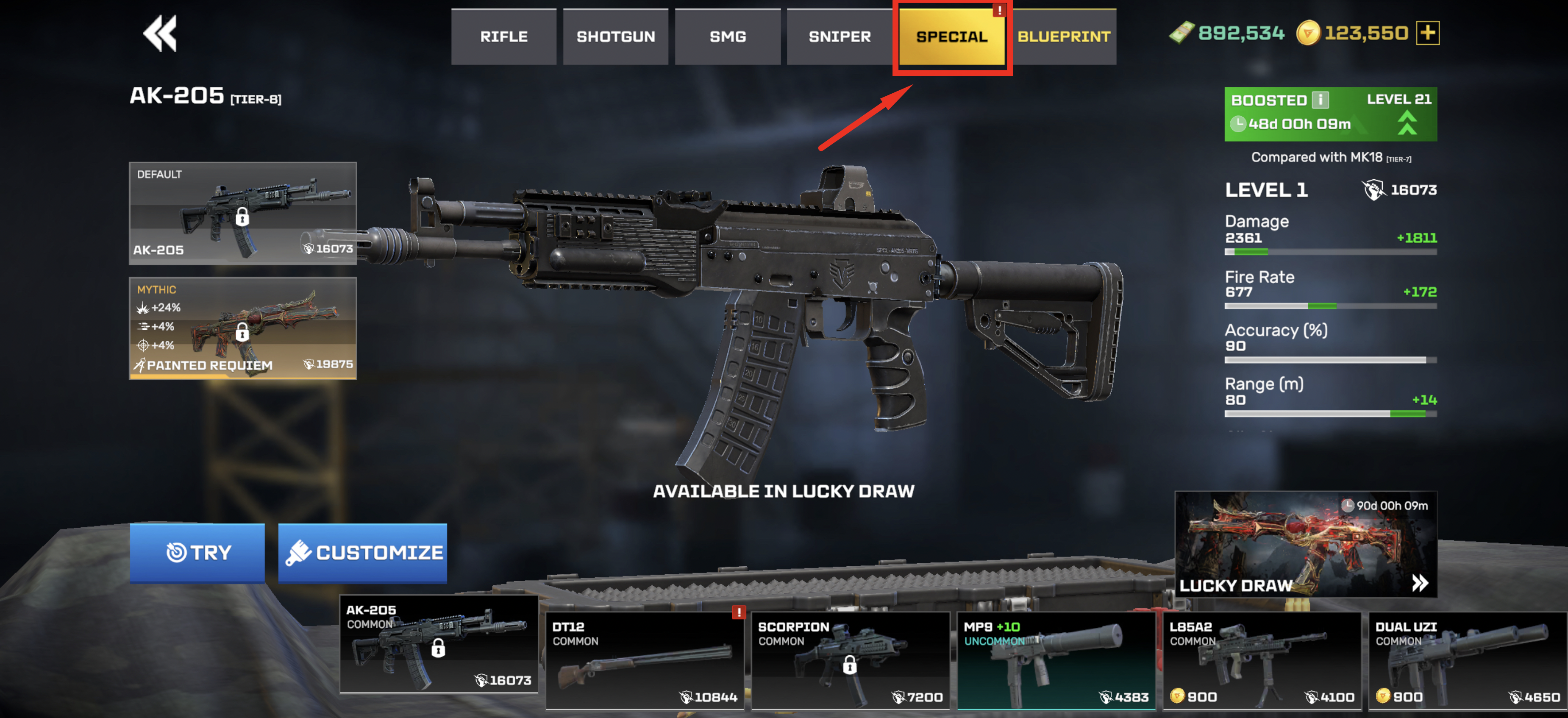 İkinci seçenek ise Lucky Draw içeriğinden özel silaha sahip olarak diğer özel silahların da kilidini açmaktır.