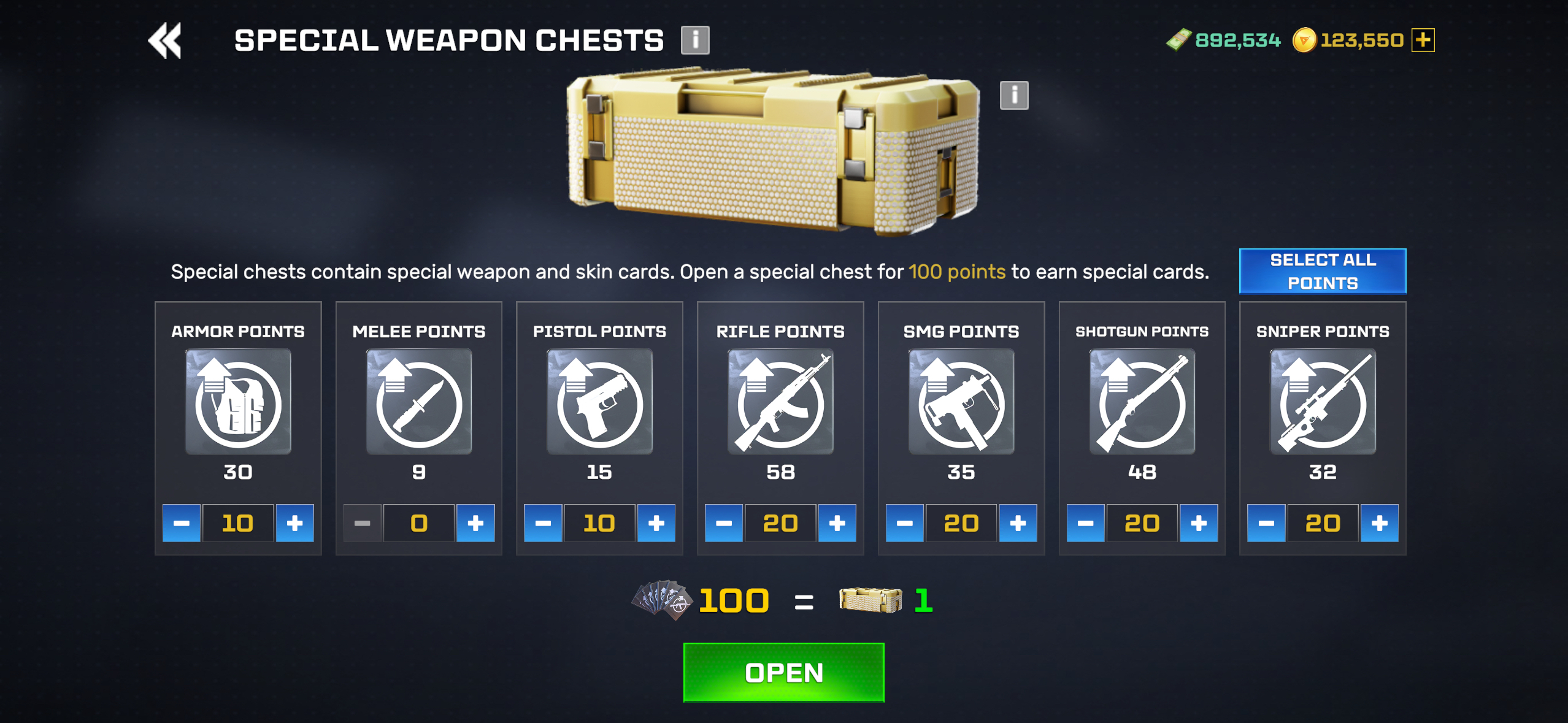 Özel silahlarını yükseltebilmeniz için öncelikle silah ve zırh puanlarına sahip olmanız gerekmektedir. Silah ve zırh punları nedir diyecek olursanız, bu makaleyi takip ederek bilgi alabilirsiniz. Bu puanları kullanarak özel silah kasası açabilir, özel silah kartlarını toplayabilirsin. Bu özel silah kartları mevcut özel silah seviyenizi yükseltmeye yarar ve böylece özel silahları daha da güçlendirilmiş olur.