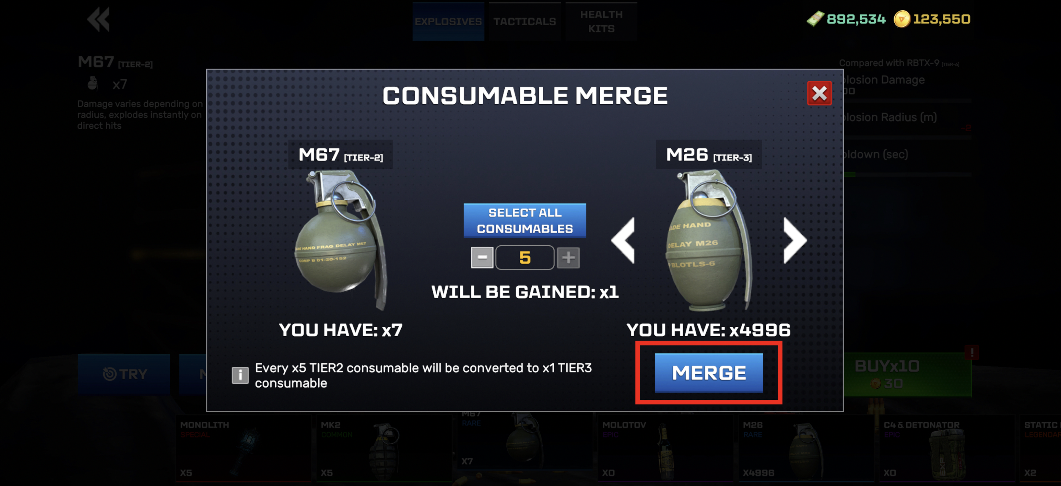 Artık eski sarf malzemelerinizi birleştirerek yeni malzemeler elde etme şansına sahipsin. Bu sistemle, yeni sarf malzemeleri kazanabilir ve savaş alanında daha güçlü hale gelebilirsin!
