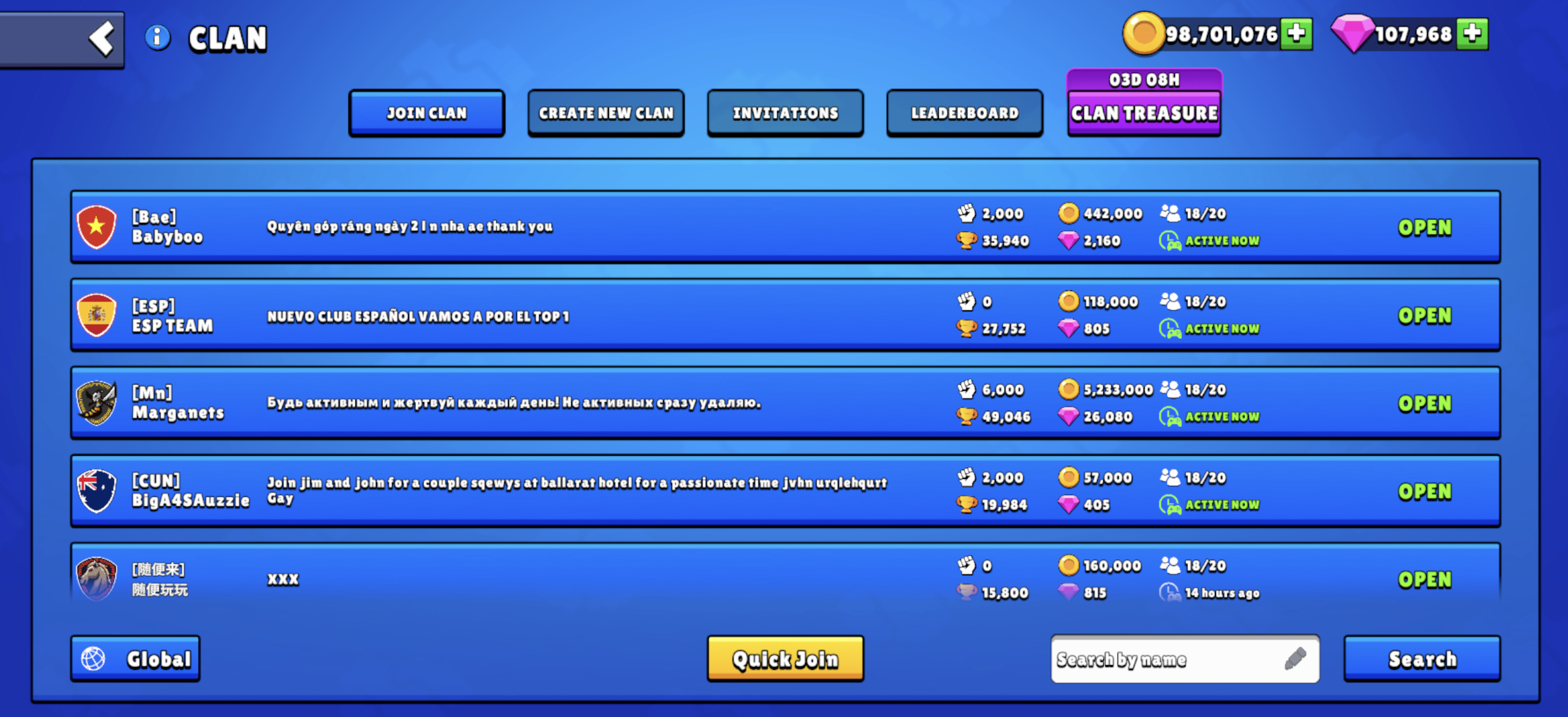 Listede bulunan Klanlara göz atın veya ekranın sağ altındaki arama çubuğunu kullanarak Klan adıyla arama yapın.