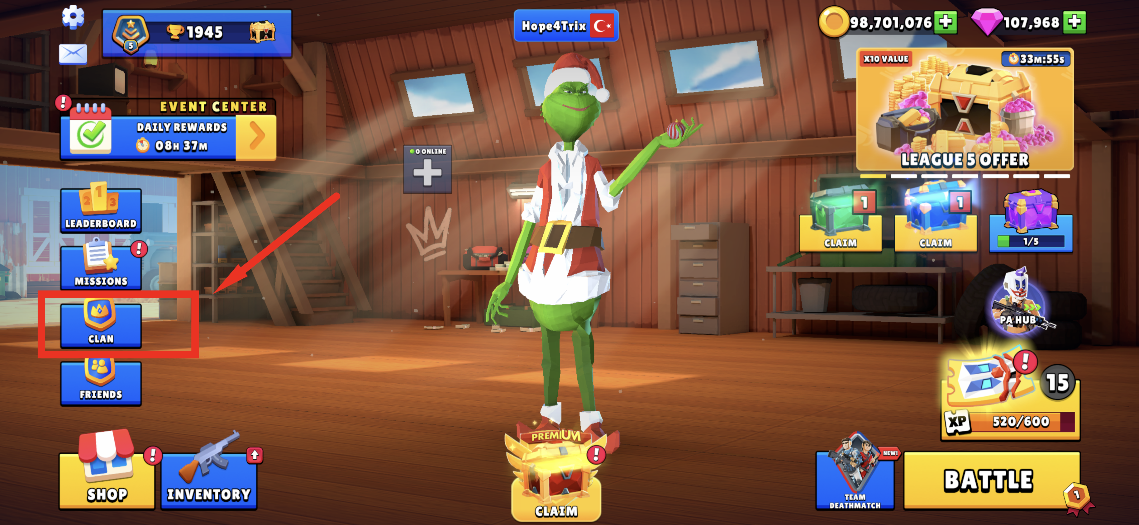 Oyunun Ana Menüsünde yer alan "Klan" simgesine dokunun.