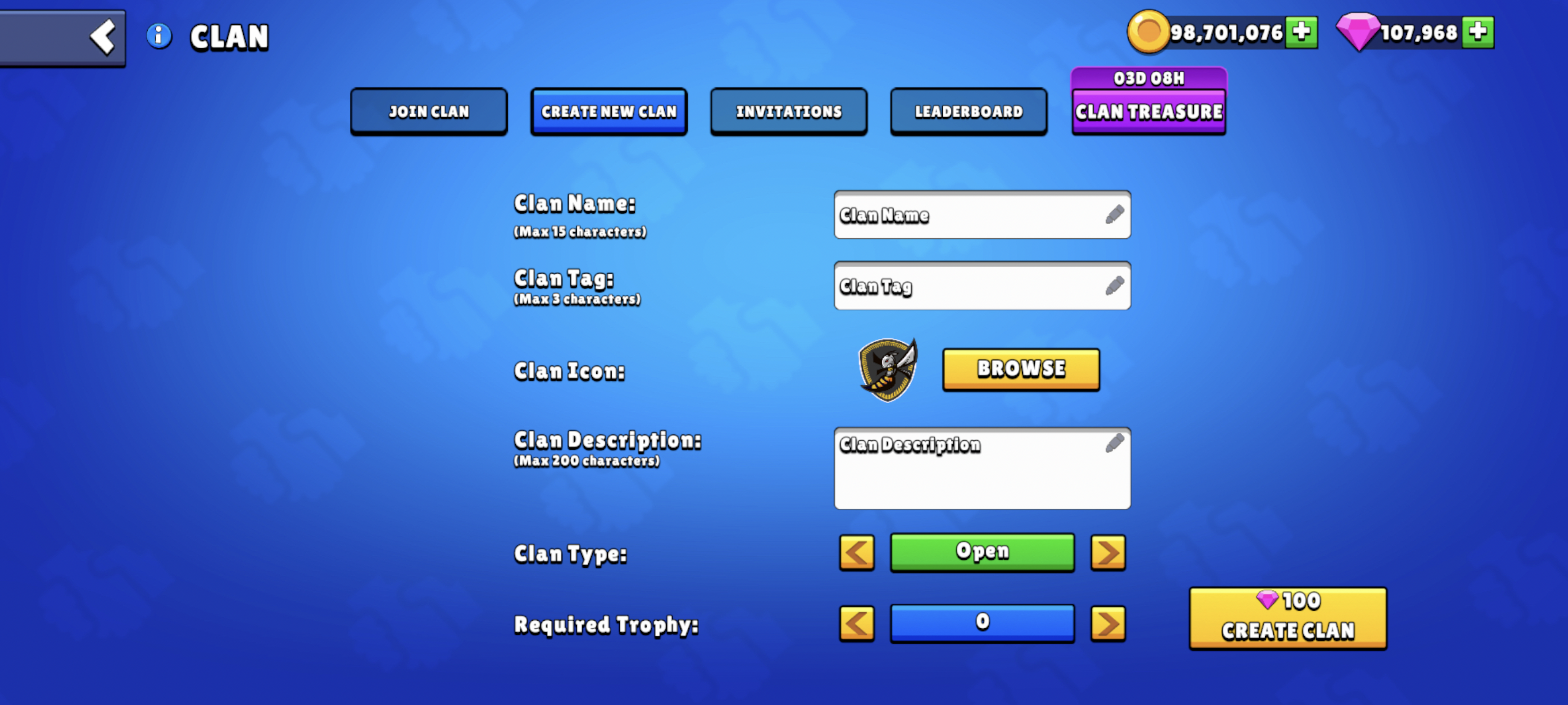 Yeni bir Klan kurmanın maliyeti 100 Elmas'tır.