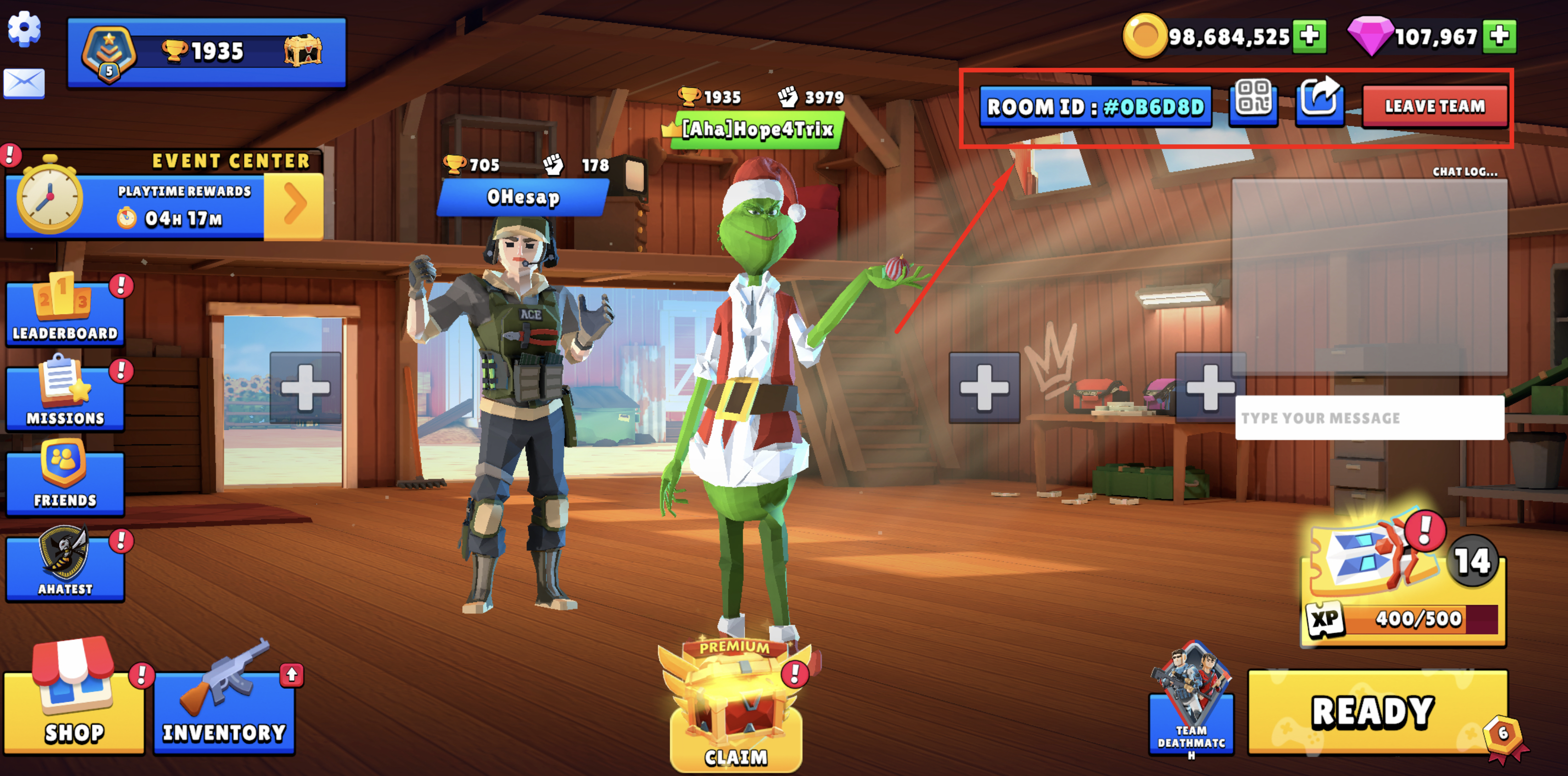 Her iki yöntemi de kullanmanız sonucunda, bir lobiye katılmış olacaksınız. Bir takım oluşturduğunuzda, sağ üst köşeden Oda ID veya odanın QR kodunu paylaşabilir ya da odayı sosyal medya kanalları üzerinden arkadaşlarınızla bir bağlantı olarak paylaşabilirsiniz.