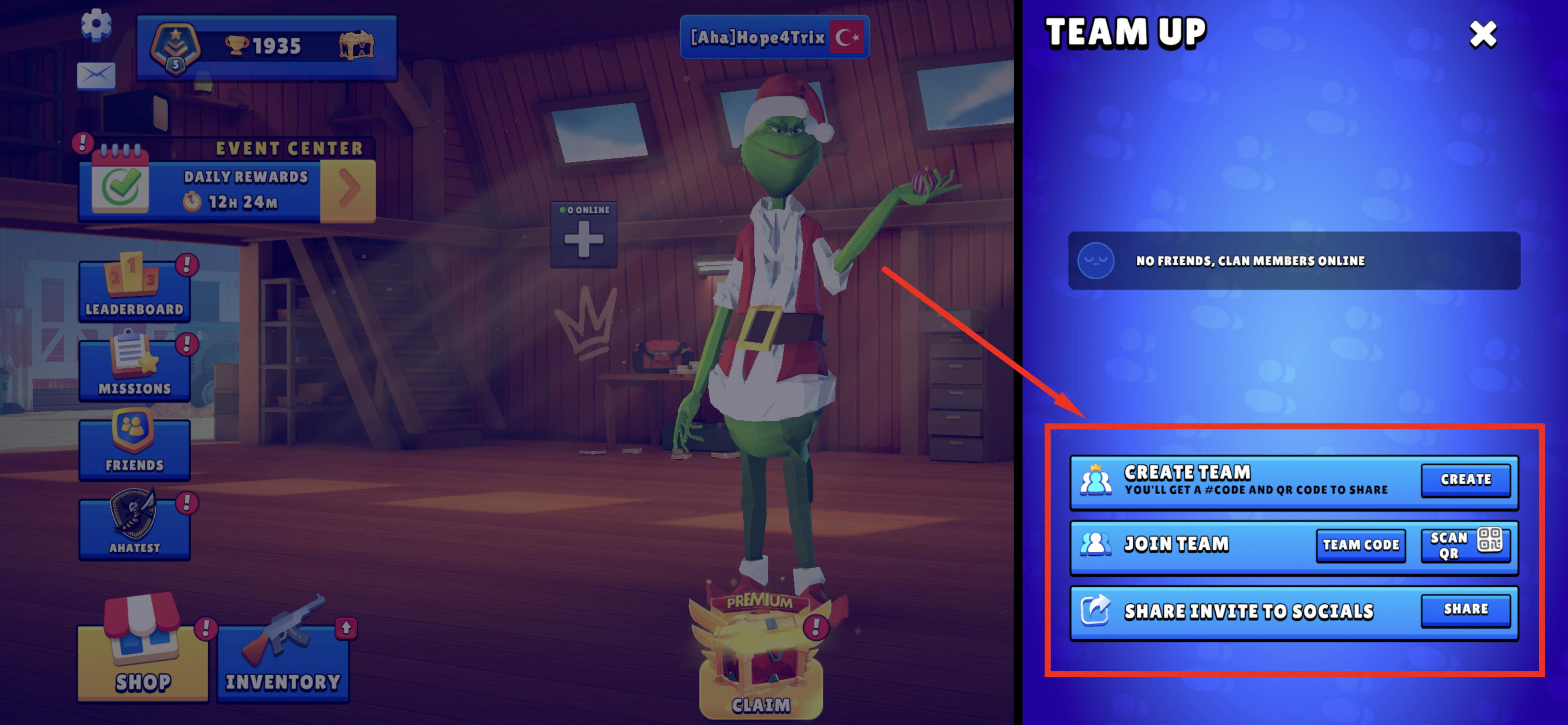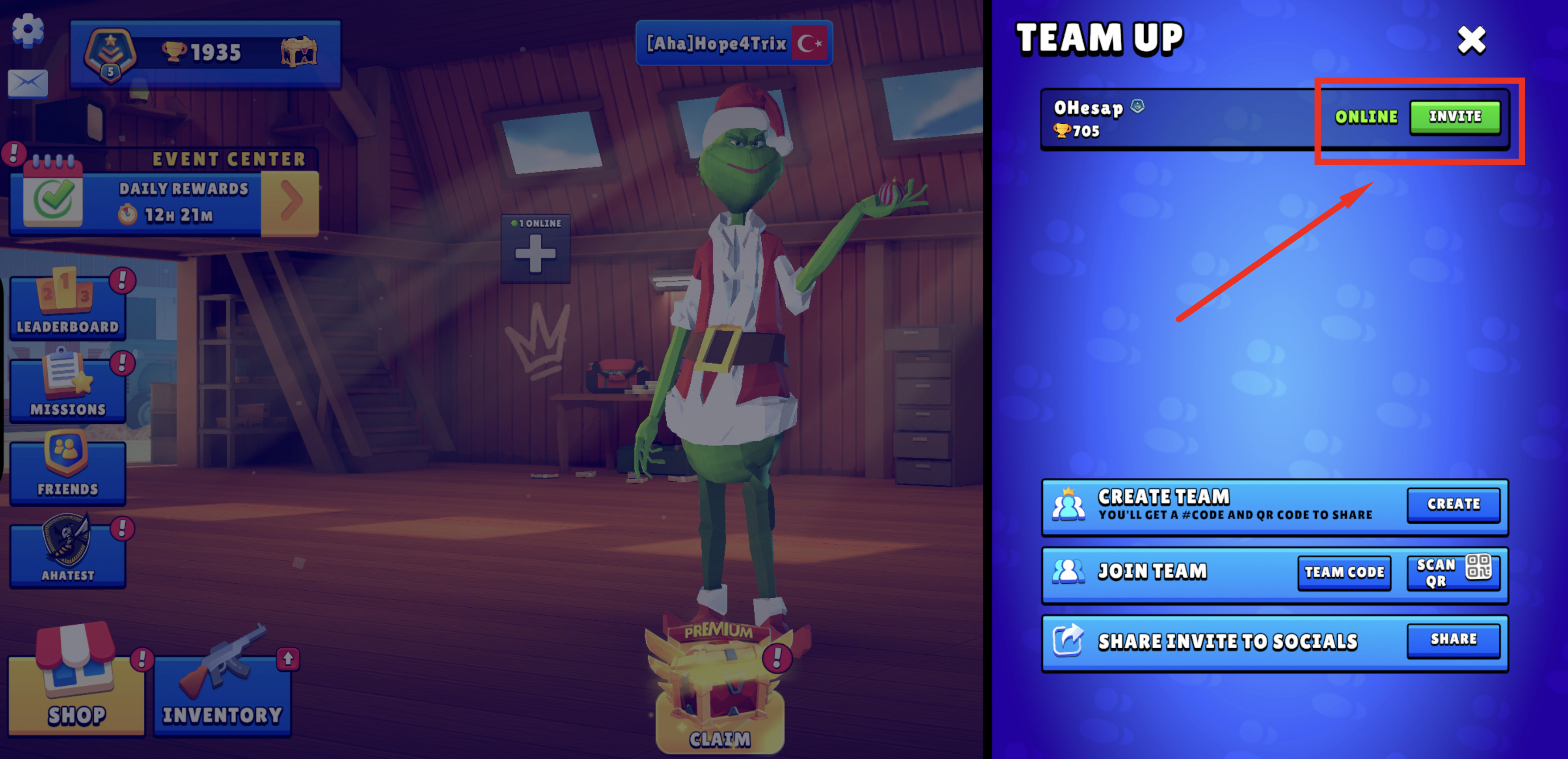 - Ana menüdeki Takım Oluştur simgesine dokunarak bir lobi oluşturabilir ve çevrimiçi arkadaşlarınızı davet edebilirsiniz.