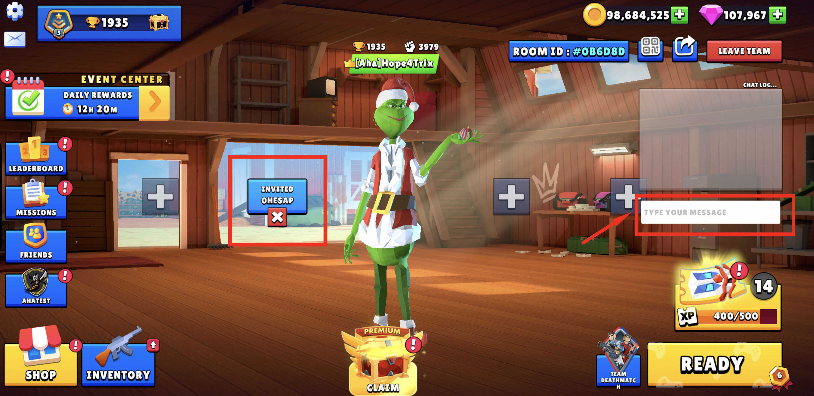 Ayrıca, sağdaki sohbet kutusunu kullanarak takımınızla metin yoluyla sohbet edebilirsiniz! (Tabii, öncelikle arkadaşınızın lobiye katılması gerekiyor!)