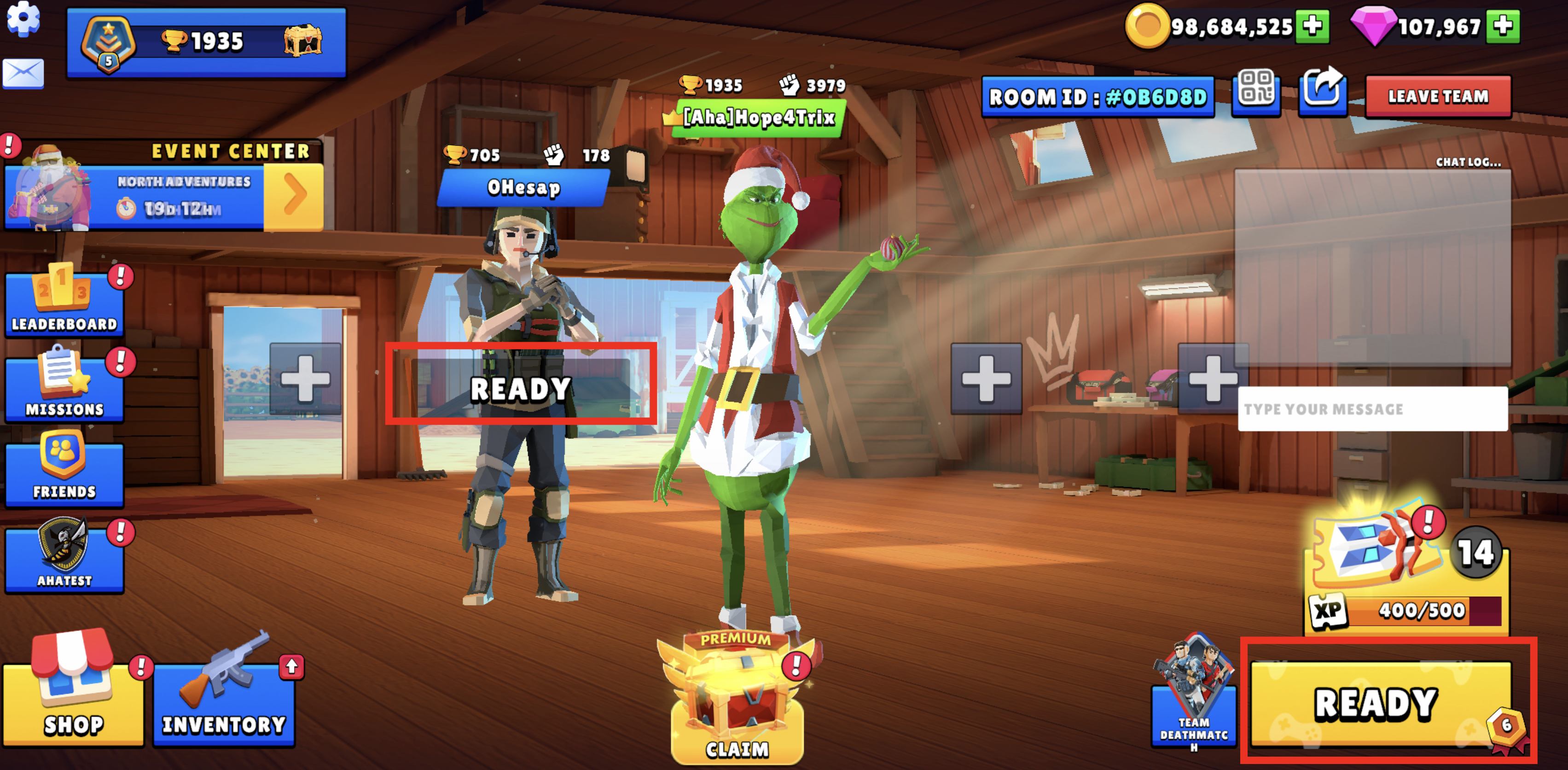 Arkadaşınız takım davetini kabul ettiğinde, onun durumunun HAZIR olarak görünmesini beklemeniz gerekir. Ancak o zaman birlikte oynayabilirsiniz.Harika! Her şey hazır. Şimdi tek yapmanız gereken, mod çubuğunun altından mod türünüzü seçmek ve HAZIR düğmesine dokunarak eşleştirme işlemini başlatmak.
