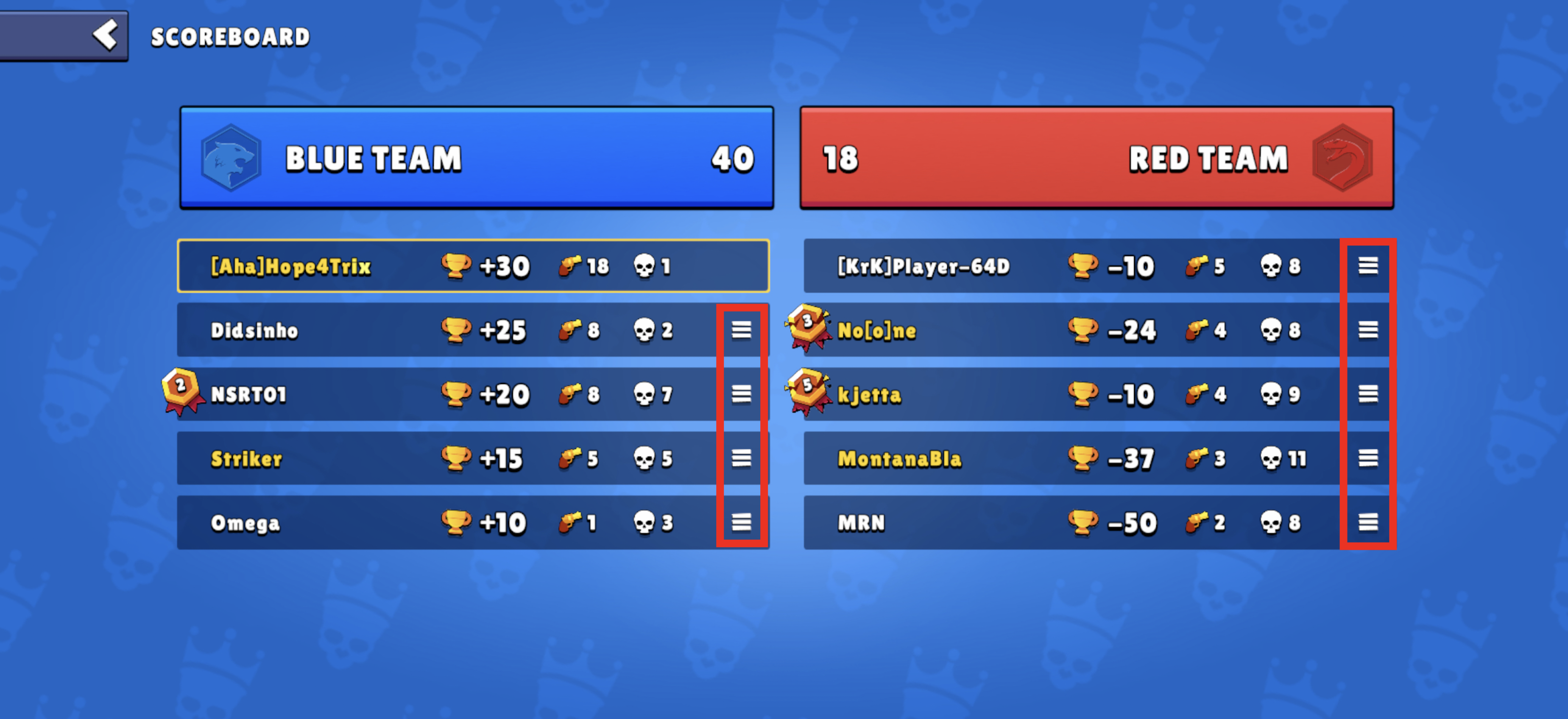 - Şikayet etmek istediğiniz oyuncunun adının yanında bulunan üç çizgi (menü ikonu) göreceksiniz. Bu üç çizgiye dokunun.